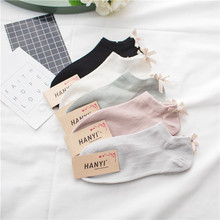 夏季船袜女学院风全棉薄款纯色短袜后跟蝴蝶结软妹原宿日系女袜子