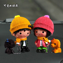 迪岩汽车摆件 遛狗可爱装饰品车内摆件创意车载卡通公仔情侣娃娃