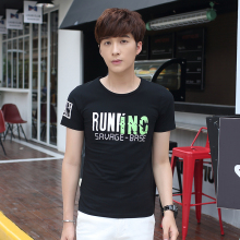 夏季丝光棉男士短袖T恤圆领韩版男装修身衣服纯色印花半袖体恤潮