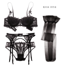 包邮!法国性感文胸套装 配吊袜带 3件套/4件套任选 黑夜诱惑