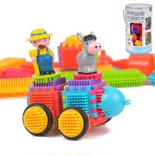 包邮 刺猬积木鬃毛积木 儿童益智拼插积木桶装 3-5岁圣诞节礼物