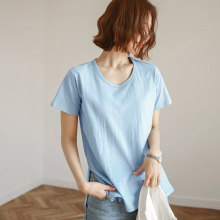 夏季韩范纯色简约短袖t恤纯棉女半袖大码体恤韩版宽松休闲上衣潮