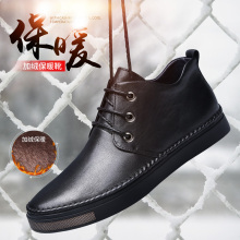 卡丹路男士休闲高帮皮鞋秋冬超软加绒保暖高帮靴男士潮鞋休闲皮鞋