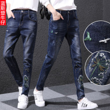 新款刺绣牛仔裤女秋长裤学生宽松显瘦哈伦裤时尚绣花小脚裤垮裤潮
