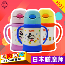 日本膳魔师保温杯FHI-250儿童宝宝学生真空手柄Thermos吸管双耳杯