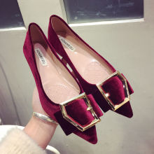 韩国单酒红色金丝绒金属扣浅口尖头平跟单鞋女平底鞋百搭舒适女鞋