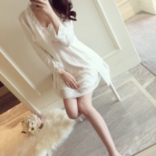 小溜家2017春夏季抹胸吊带睡裙睡袍两件套V领带胸垫蕾丝性感睡衣