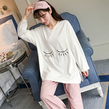 送眼罩 韩版春季简约甜美睫毛纯棉套装宽松女士阔腿裤睡衣家居服