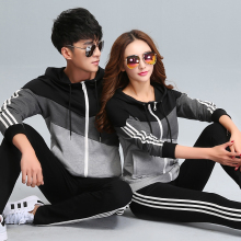 2017运动套装男春秋情侣休闲套装女运动装大码跑步运动服两件套
