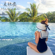 fly away 泰国少女潮牌水手风连体温泉女游泳衣 海边度假泳装超美