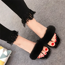 2017夏季新款兔毛毛毛一字拖鞋女时尚韩版露趾凉拖中跟粗跟女鞋潮