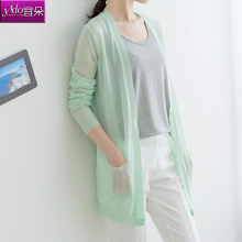 薄款夏季针织衫女装开衫毛衣外搭披肩大码2017春装新款中长款外套