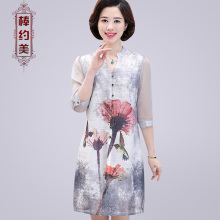 2017新款开衫两件套中长款夏季薄款外套大码休闲中年女装夏装套装