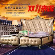 斯顿英少 欧式床双人床 美式床全实木真皮床 复古桦木雕花1.8米床