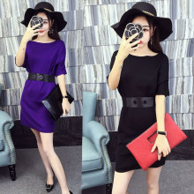 2017春夏季名媛时尚性感女装蝙蝠袖修身显瘦针织包臀连衣裙短裙潮