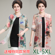 中老年防晒衣女中长款雪纺衬衫中年妈妈装大码女装印花开衫薄外套