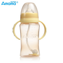 安心妈妈宽口径晶钻玻璃新生儿婴儿奶瓶防胀气防呛带吸管手柄