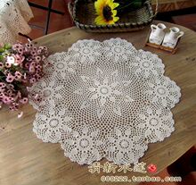 手工钩针花小茶几圆桌布垫 欧式田园复古怀旧纯棉编织盖布60-90cm