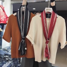 2017春夏季新款 韩国百搭仿真丝竖条纹小围巾装饰小领巾女潮