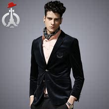 长人春秋季男士灯芯绒西服外套英伦修身商务休闲西装上衣便服单西