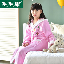毛毛雨卡通儿童浴袍纯棉带帽毛巾料小孩浴衣男女睡袍加厚吸水