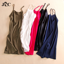 JC女士真丝睡裙吊带背心女睡衣中长款桑蚕丝夏季性感宽松2017新款