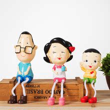 家居客厅摆件工艺品大头儿子三口吊脚娃娃客厅电视柜摆设结婚礼物