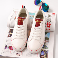 远波 帆布鞋女潮韩版低帮学院韩国皮面平底小白鞋女休闲系带 A870