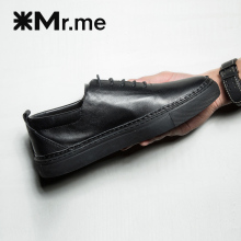 米先生男鞋2016秋季新品真皮英伦时尚休闲皮鞋潮鞋透气松紧带板鞋