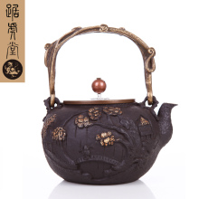 踞虎堂鎏金游龙壶养生铸铁壶铜提梁老铁壶生铁茶壶煮茶水壶