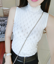 新款韩版秋冬镂空提花半高领针织背心女士修身无袖打底衫套头上衣