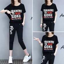 2017夏季新款九分裤口袋字母创意休闲优雅气质时尚蝙蝠袖套装