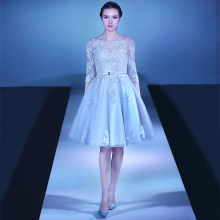 宴会晚礼服2017新款聚会小礼服短款中袖主持人礼服女生日订婚礼服