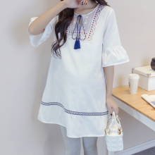 孕妇连衣裙2016春装上衣时尚韩版绣花娃娃领时尚气质孕妇裙装长袖
