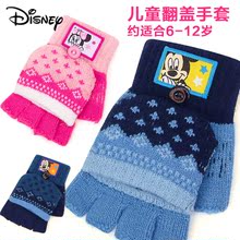 迪士尼儿童手套男女童秋冬翻盖写字手套毛线宝宝半指手套魔术手套