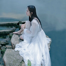 2016春夏新款白色仙女风长裙森女灯笼袖透气长款大裙摆连衣裙女神