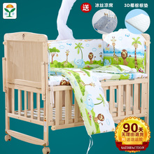 顺幸301实木婴儿床无漆宝宝床游戏床摇篮床多功能带蚊帐防污床头