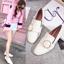 2017欧美时尚明星新款真皮平底软底金属扣件开车鞋深口单鞋