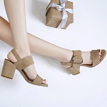 170欧美明星时尚新品真皮粗跟凉鞋