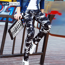 春秋男士彩绘紧身休闲裤 韩版个性印花青少年休闲夜店修身小脚裤
