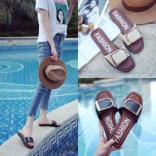 2017夏季韩版金属扣拖鞋女简约平跟平底防滑室内外一字凉拖沙滩鞋