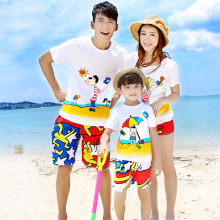 2016新款夏装亲子装韩版全家一家三口装母女母子装恐龙沙滩裤套装