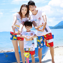 海边度假2016新款亲子装夏三口 母子母女短袖T恤沙滩速干裤家庭装