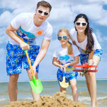 亲子装夏装情侣沙滩裤全家短袖套装母女装海边夏季速干裤2016新款