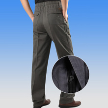 爱柏莱中老年人男裤爸爸装秋冬加绒加厚款松紧高腰宽松休闲直筒裤