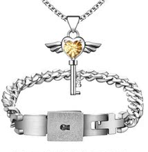 浪漫风暴 925银 恋人手铐情侣项链 钥匙锁情侣吊坠 男女刻字银饰