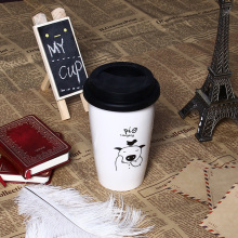 百鸿 硅胶盖双层隔热陶瓷杯 水杯个人杯陶瓷马克杯 陶瓷水杯DY