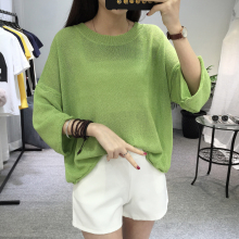 夏季大码女装镂空套头罩衫薄短款低圆领针织衫宽松空调衫女网衫