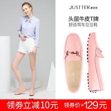 Justter/爵思塔豆豆鞋女头层牛皮金属扣驾车女鞋休闲平底1090