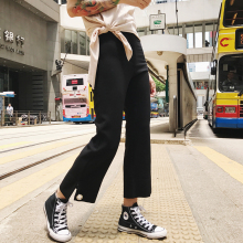 EZ14定制2017夏装新款黑色开叉圆环喇叭裤九分裤阔腿裤女EZ72033